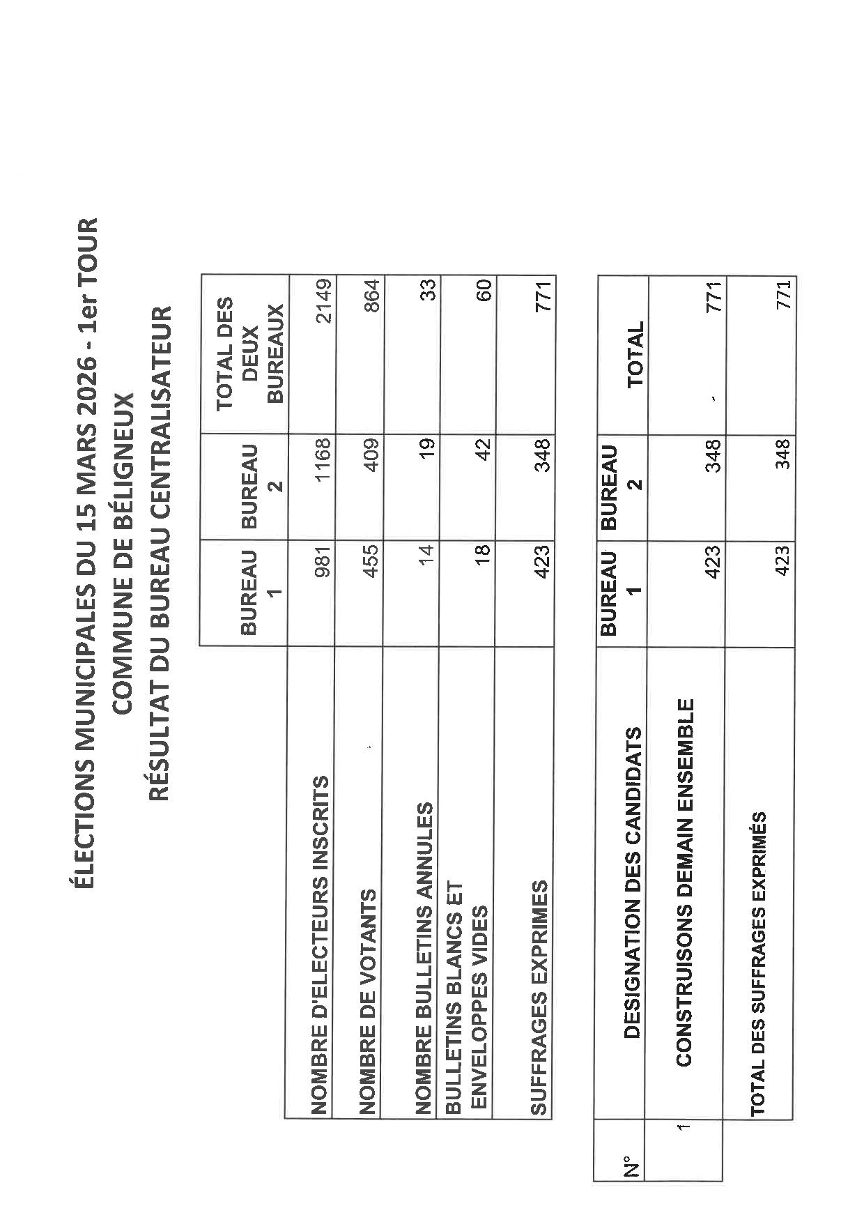 Résultats des élections municipales du 15 mars 2026