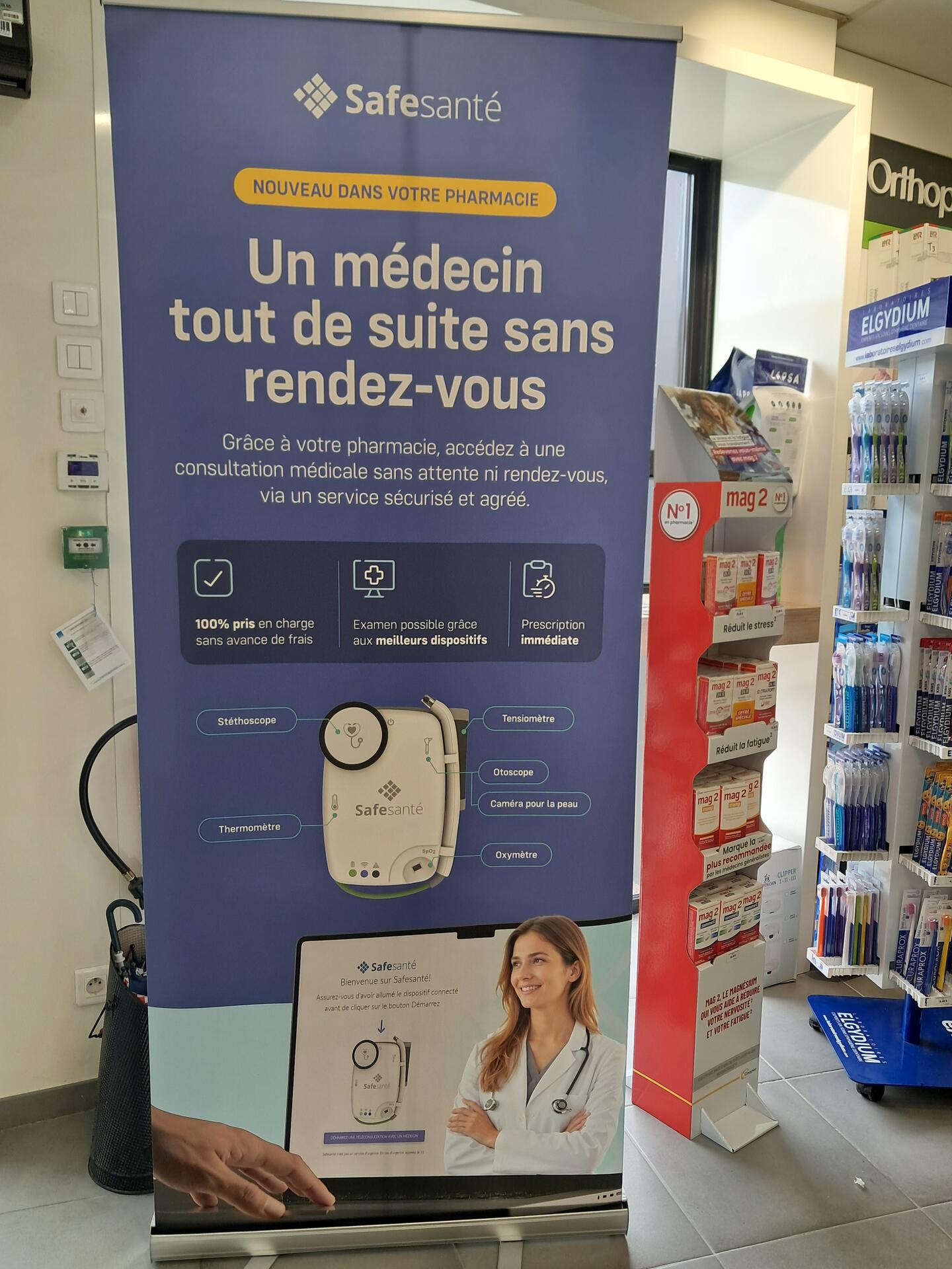 Votre pharmacie facilite l’accès aux soins de santé et vous propose depuis peu la téléconsultation avec SafeSanté. Une consultation médicale immédiate avec un médecin généraliste via une plateforme qui garantit un accès médical à distance rapide sans rendez-vous, ou avec prise de rendez-vous sur Doctolib, et une prescription d’ordonnance si nécessaire.