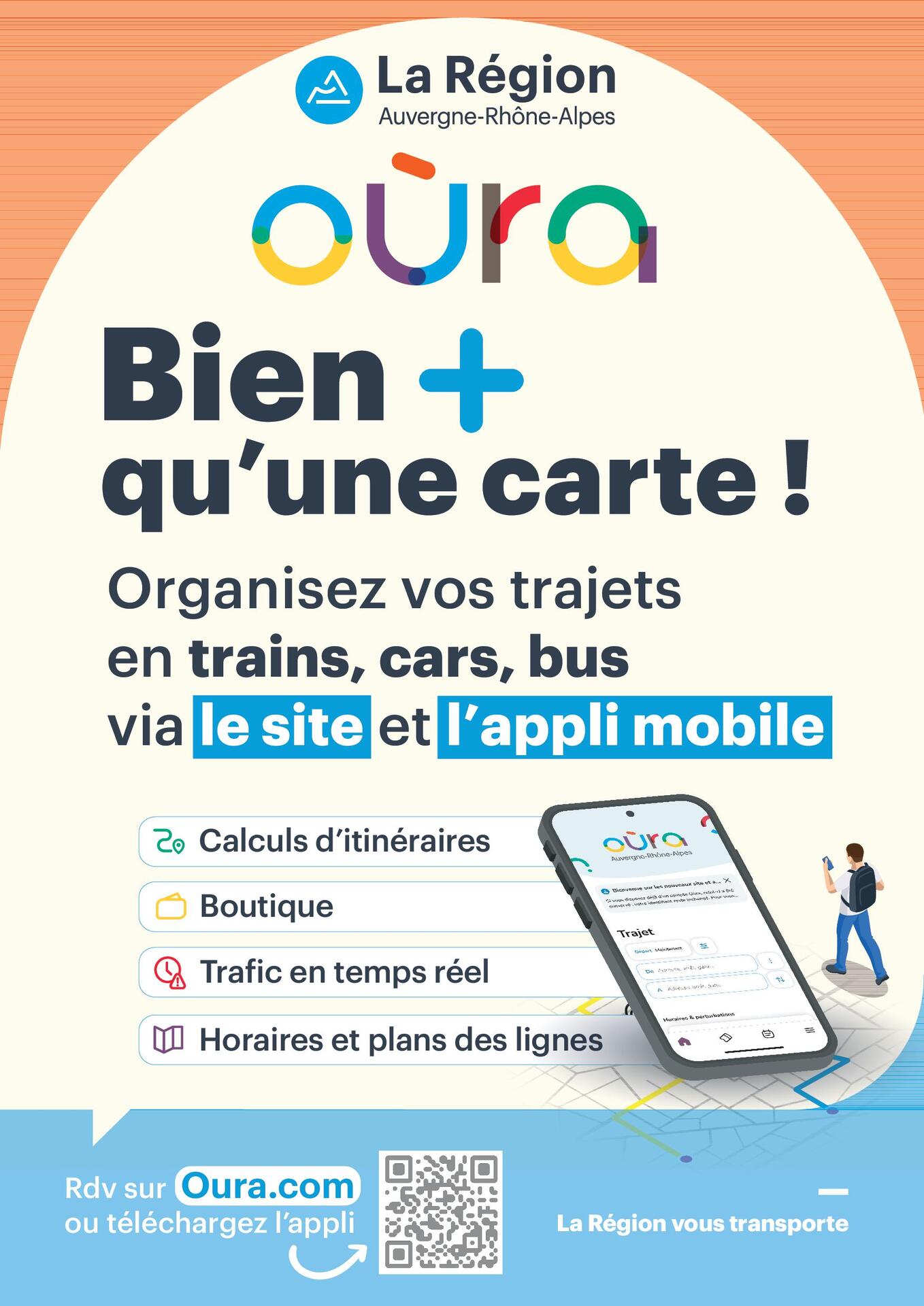 Oùra c’est aujourd’hui une appli qui permet de calculer son itinéraire en transport collectif sur le territoire régional avec 55 réseaux intégrés. La possibilité d’acheter ses titres de transport et dans quelques moi d’acheter un billet unique même dans le cadre d’une utilisation de plusieurs réseaux de transport. C’est également une carte qui permet de télécharger ses abonnements multi modaux.